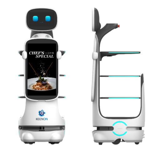 可自適應頭部轉向動作,依據運行、觸摸、取餐狀態,給于動作回饋